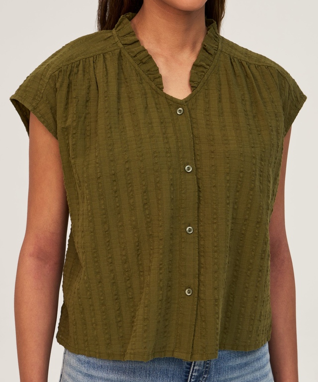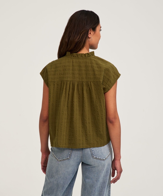 Blouse à manches courtes en coton texturé pour femmes, Denver Hayes