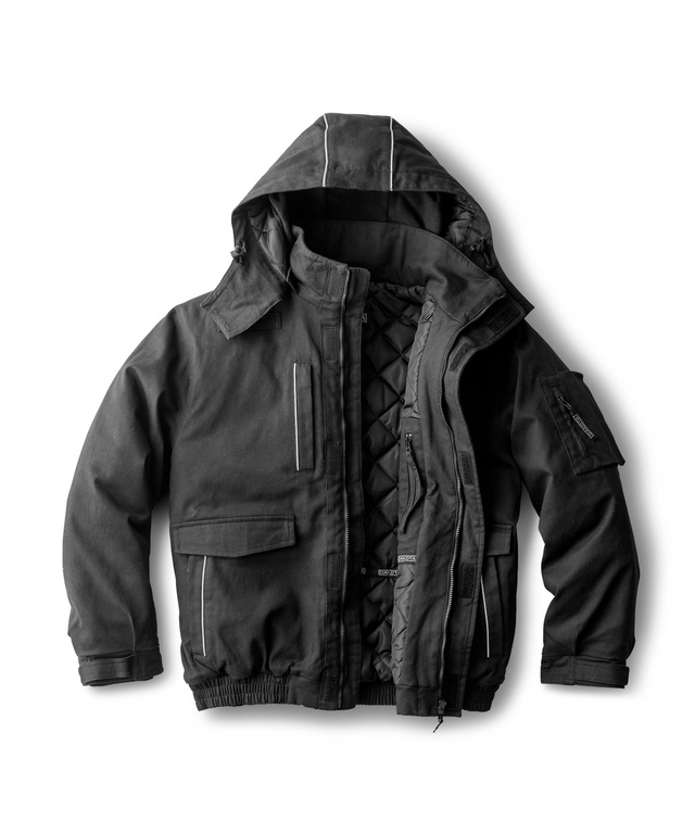 Ce blouson aviateur en sergé extensible de coton a une doublure de polyester pour vous garder confortablement au chaud pendant votre journée de travail. Le capuchon trois pièces est muni d’un passe-montagne en micromolleton pour une protection accrue contre les éléments. Conçu pour la durabilité et comprenant des bandes réfléchissantes pour une visibilité améliorée, ce blouson est un ajout idéal à votre garde-robe de travail.
