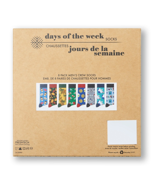 Voici les chaussettes à motif fantaisie de Denver Hayes et une idée de nouveauté : 7 paires et une de rechange, au cas où vous n'auriez pas le temps de faire votre lessive la fin de semaine! Ces mi-chaussettes sont renforcées au niveau du talon et de la pointe pour plus de durabilité. En outre, notre technologie de protection antiodeurs garde vos pieds au frais chaque jour.