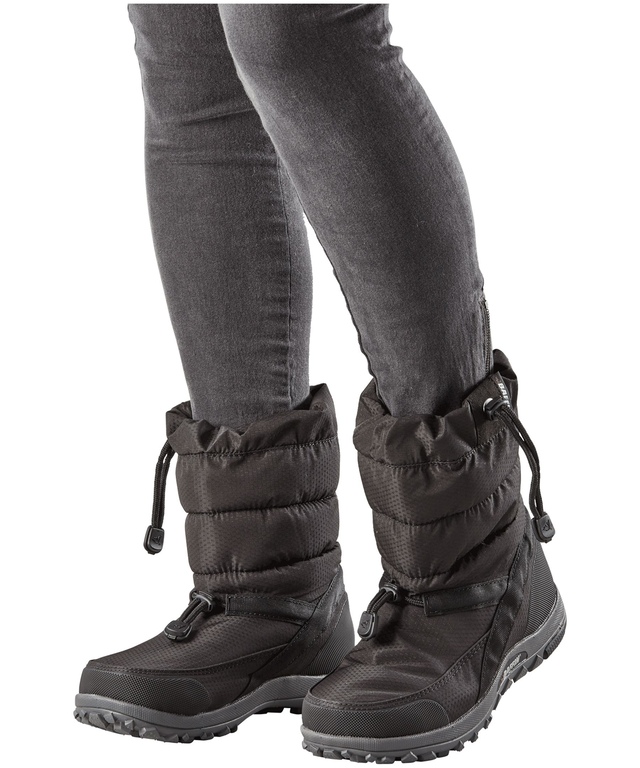 These boots are cosy, exceptionally light, and have an ice grip that is just shy of wearing ice cleats, which is pretty good. I normally wear a size 8 but had to size up to a size 9 for a proper fit. Though their cinch closure makes these boots easy to slip on and off, they don't cinch very far and lack any ankle support. Overall, I enjoy wearing these boots for my longer hikes but would not recommend them for anything other than level terrain that has been cleared of snow.