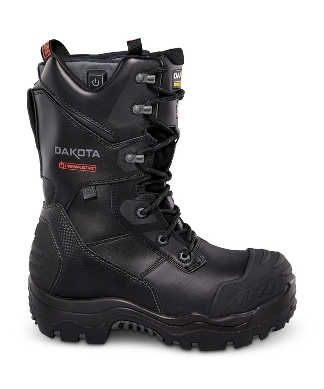 Pour une protection dans des conditions de travail extrêmes, nos bottes de travail de Dakota sont dotées d'éléments chauffants à pile THERMALECTRICMD et d'une semelle d'usure ICEFXMD, une technologie de pointe pour une adhérence avancée sur la glace. Ces bottes sont également étanches à l'eau et sont dotées de notre ISOLANT T-MAXMD pour garder vos pieds au sec et au chaud, même s’il ne fait pas assez froid pour faire fonctionner l’élément chauffant. Ces bottes sont conformes aux exigences de sécurité de catégorie 1 CSA grâce à un embout et à une semelle de protection en composite.