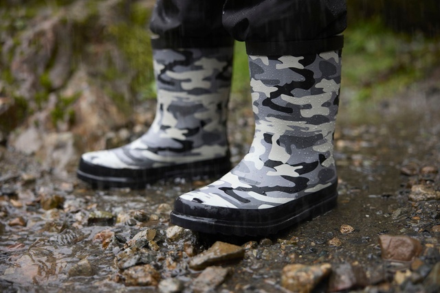 Ces bottes de caoutchouc de WindRiver sont dotées d'un imprimé camouflage amusant, ce qui les rend idéales pour les enfants qui aiment piétiner dans les flaques d'eau. Elles sont conçues pour le confort et scellées pour empêcher l'humidité de pénétrer.