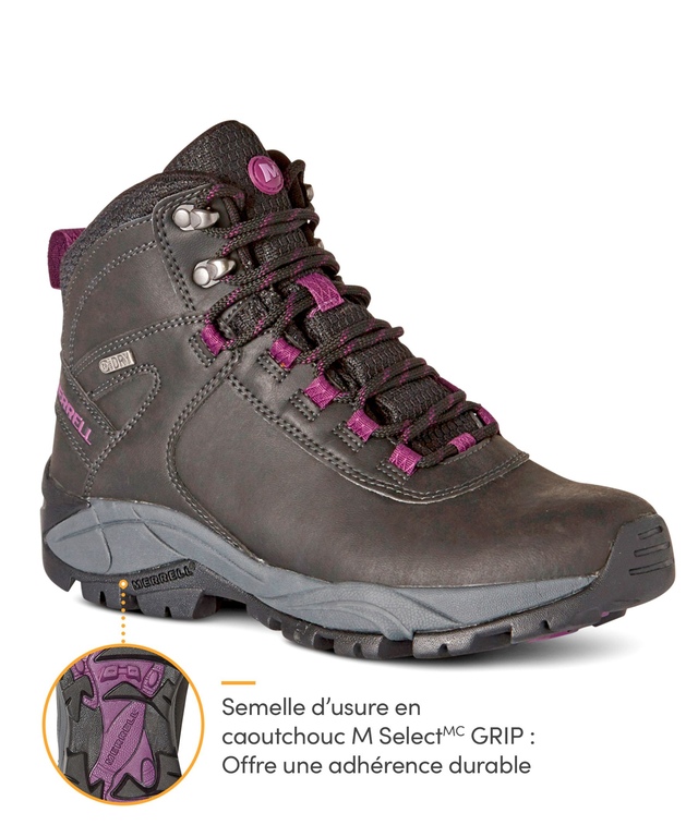 Les élégantes bottes de randonnée mi-hautes étanches à l'eau Vego de Merrell vous permettront de marcher en tout confort. Elles sont munies d'une tige en microsuède perméable à l'air et d'une semelle intérieure en mousse. Elles procurent ainsi un confort et un soutien qui durent toute la journée. Par ailleurs, ces élégantes chaussures noires de tous les jours affichent un désign élégant qui s'agence à toutes les tenues.