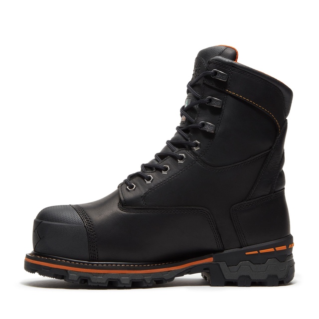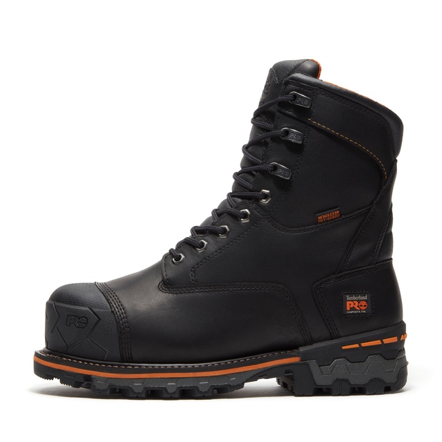Les bottes de travail avec protection en composite et protection métatarsienne Boondock pour hommes de Timberland PRO ont une protection en composite asymétrique et une plaque non métallique qui résiste aux perforations pour une protection accrue. Ces bottes de 8 pouces sont faites de cuir étanche à l'eau de qualité supérieure avec une membrane imperméable, et elles sont isolées avec 200 grammes de matériau pour plus de chaleur. Ces bottes de travail offrent de plus une protection contre les dangers électriques, et la semelle d’usure toutes saisons légère en polyuréthane thermoplastique résistante à l’abrasion assure la durabilité. L'assise plantaire en polyuréthane procure un amortissement des chocs et un retour d'énergie pour un confort qui dure toute la journée.