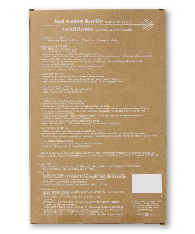 Housse de bouillotte lavable en peluche