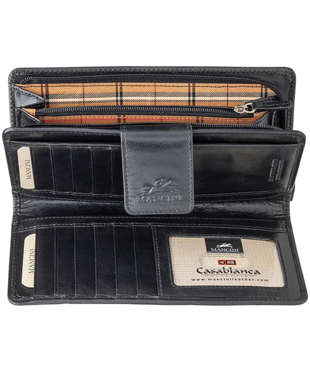Notre collection CASABLANCA célèbre la fusion de style traditionnel et contemporain. Urbain et chic avec une attitude décontractée. Équipés de la dernière technologiede blocage d'ondes RFID pour assurer que vos données et vos cartes sont sécuritaires. Des couches métalliques spéciales intégrées dans les fentes pour cartes empêchent la lecture électronique de votre portefeuille. Articles en cuir pleine fleur fabriqués à la main. Ce portefeuille comprend une poche divisée pour la monnaie et plusieurs fentes pour cartes de crédit. Le tout est sécurisé par une sangle à bouton pression.