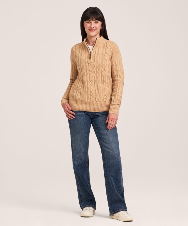 Soyez fin prête pour les activités de plein air en saisons froides en portant le chandail à point de torsade de WindRiver. Ce chandail est tricoté en mélange de coton et de laine mérinos afin d'être naturellement perméable à l'air tout en vous enveloppant d'une chaleur douillette. Ce haut à col cheminée possède une glissière 1/4 avec tirette à glissière de couleur contrastante.