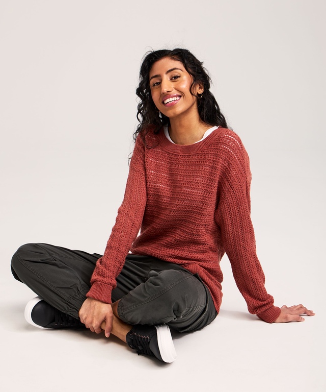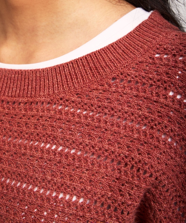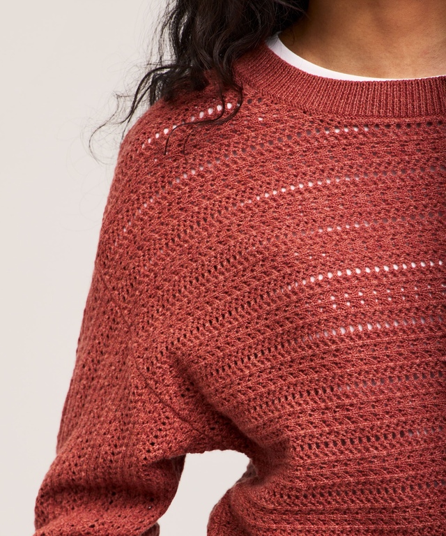 Un joli motif ajouré rehausse l’aspect de ce chandail de Denver Hayes. Le modèle propose une encolure bateau qui encadre bien le visage. Il s’agence à tout pantalon ou jupe et conviendra à toutes les activités de votre journée. Ajoutez-y un collier et vous pourrez le porter le soir également.