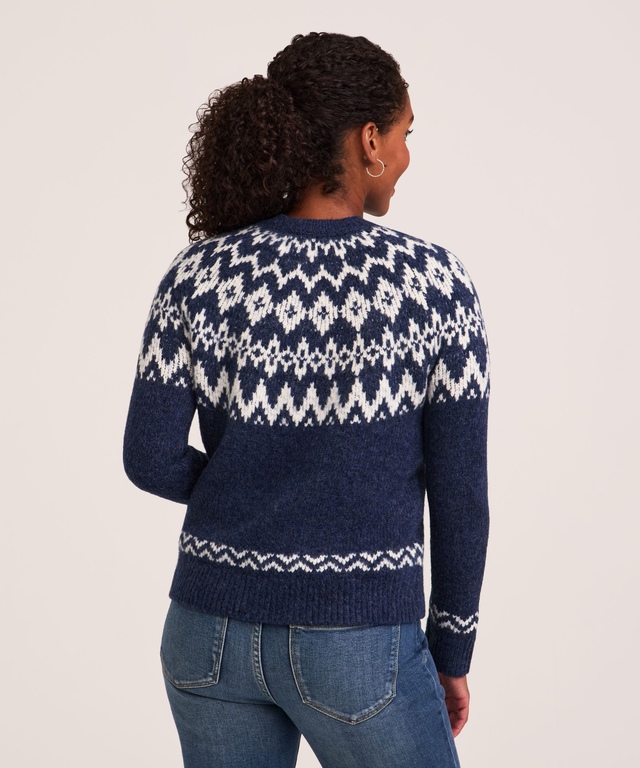 Ce superbe chandail de notre collection Heritage de WindRiver est tricoté en un motif jacquard traditionnel enveloppant la poitrine et les épaules. Il est ultradoux et douillet, donc parfait pour le temps froid de l’automne et de l’hiver.