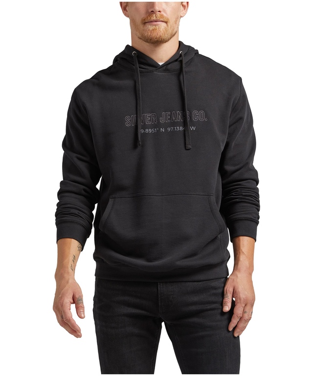 Destiné à la fois aux hommes et aux femmes, ce chandail à capuche à enfiler est le vêtement idéal en matière de confort décontracté. Il est fabriqué en doux tissu bouclette qui convient parfaitement au temps froid. De plus, il est muni d'un cordon de serrage ajustable et d'une poche kangourou qui sert d’excellent chauffe-mains. Ce chandail affiche aussi des coordonnées géographiques sous le logo de poitrine Silver Jeans.