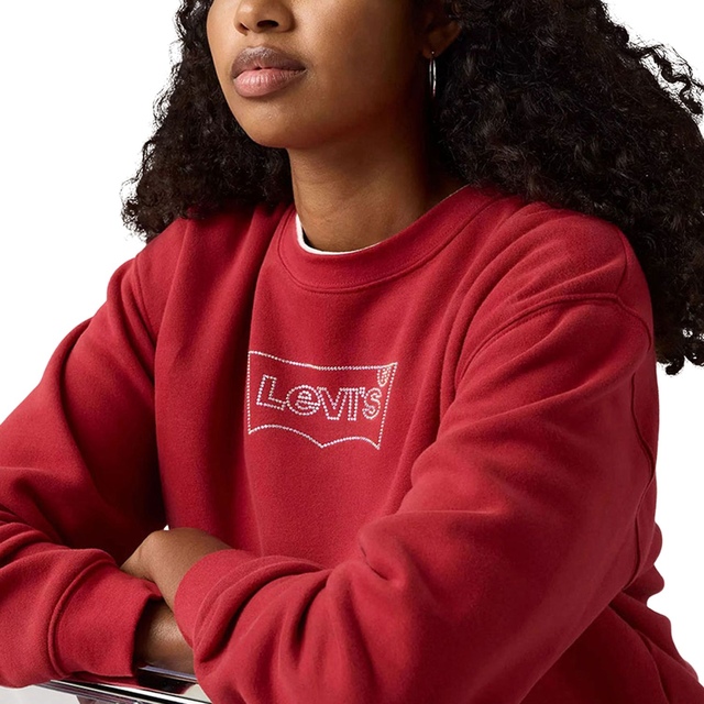 Soyez confortable et élégante avec le chandail en molleton de tous les jours pour femmes de Levi's. Ce chandail est doté d'une encolure ras du cou classique et de manches longues, ce qui le rend idéal pour les tenues de tous les jours. Le graphique de pierres du Rhin délicat ajoute une touche d'éclat à votre garde-robe décontractée.