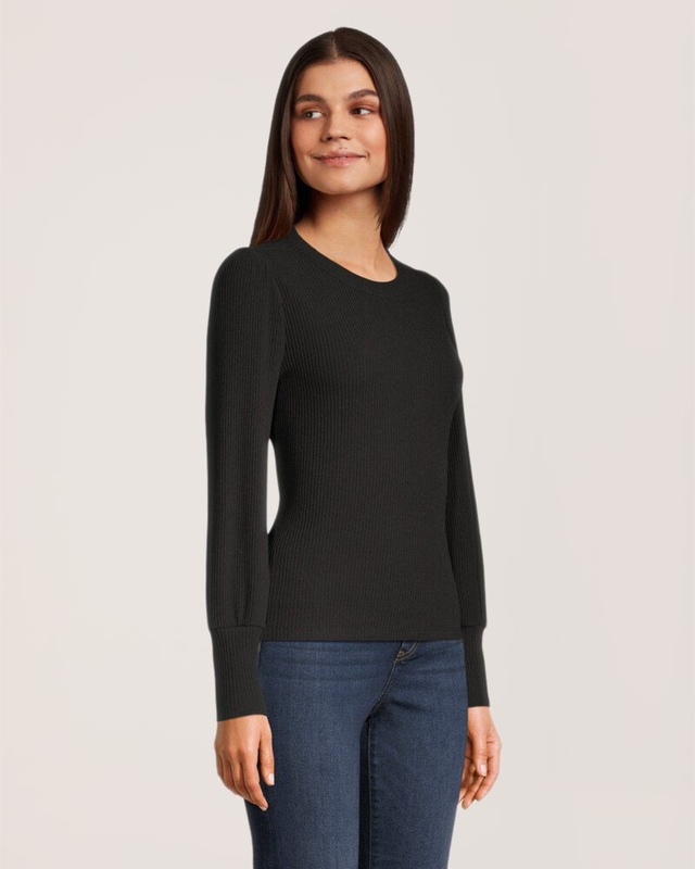 Ce nouveau vêtement d'automne de Denver Hayes possède des manches offrant des caractéristiques fort intéressantes, soit un poignet allongé et des épaules bouffantes. Il est fabriqué en tricot côtelé doux et brossé pour assurer votre confort en toute élégance.