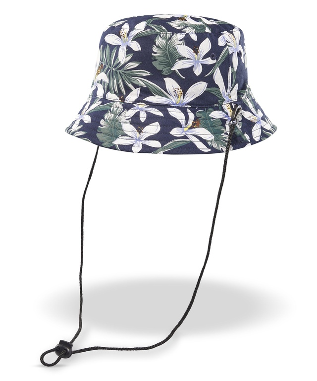 Notre chapeau cloche de FarWest est réversible avec une couleur unie d'un côté et un motif imprimé de l'autre. Ce chapeau offre une bonne protection contre le soleil et il a une mentonnière réglable pour les journées venteuses.