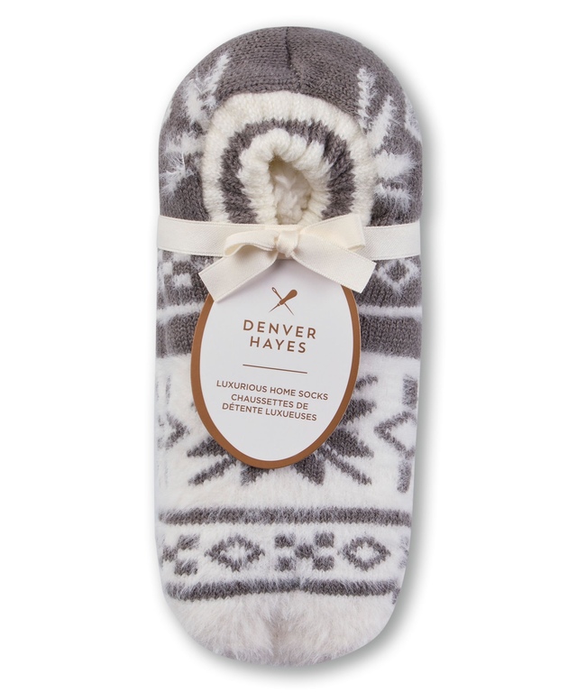 Ces chaussettes de Denver Hayes sont tricotées dans un motif nordique de flocons de neige et elles gardent vos pieds chauds et douillets en hiver. Une doublure en faux sherpa offre une protection accrue et un relief antidérapant en silicone sur le dessous vous garde en sécurité lorsque vous marchez sur des surfaces glissantes.