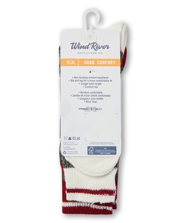 Ces mi-chaussettes de WindRiver sont idéales pour les activités de plein air par temps frais. Elles sont disponibles dans un emballage pratique de deux paires. Les chaussettes comportent une pointe lisse pour le confort sans frottement. Le talon en Y offrent un meilleur ajustement. La jambe en tricot côtelé est munie d'une bande de confort. Ces chaussettes sont munies des technologies Quad Comfort® et FRESHTECH® Technologie de protection antiodeurs pour une sensation de fraîcheur qui dure toute la journée. Elles sont conçues pour le plaisir en plein air.