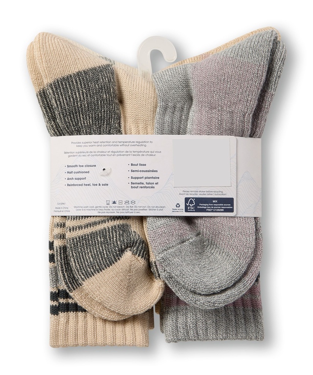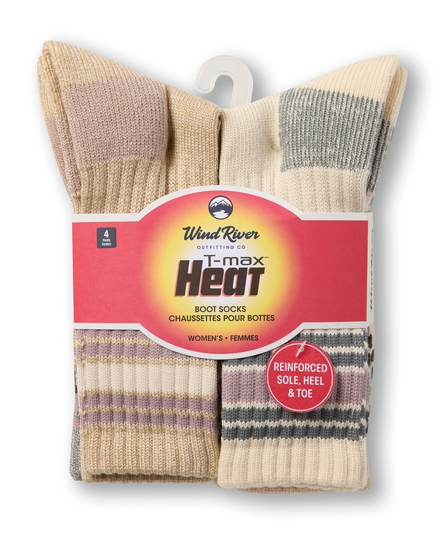 Partez pour les paysages féeriques de l'hiver en sachant que vos pieds seront bien protégés. Nos chaussettes WindRiver intègrent la technologie T-MAX HEATMD qui aide à retenir la chaleur tout en régulant la température. Lorsque vos pieds sont au chaud, vous pouvez profiter de l'hiver plus longtemps. Ces chaussettes sont offertes dans un paquet de quatre paires pour faciliter les achats.