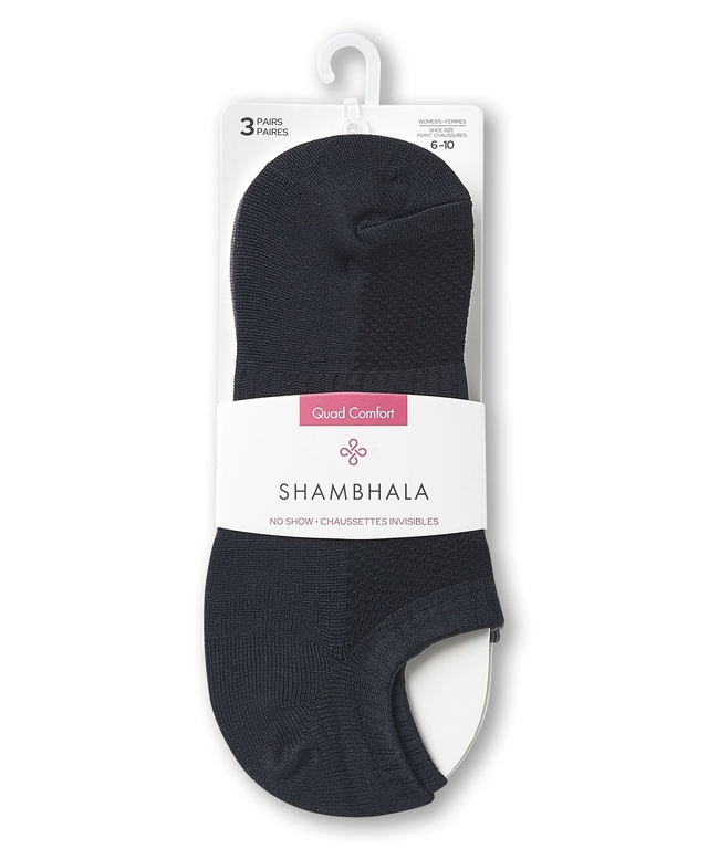 Nos chaussettes invisibles de Shambhala sont conçues pour assurer le confort de vos pieds toute la journée. Elles sont dotées de la technologie QUAD COMFORTMD pour le rembourrage et le soutien, et d'une pointe lisse qui empêche le frottement. Elles sont offertes en paquet de trois paires pour faciliter les achats.