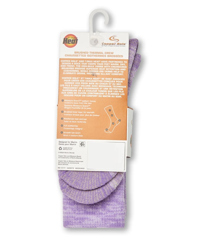 Ces chaussettes isothermes de Copper Sole intègrent la technologie T-MAX HEATMD qui offre une rétention supérieure de la chaleur et la régulation de la température. Pour encore plus de confort, un système Moisture GuardMC éloigne la transpiration de la peau et des ions de cuivre contribuent à l’élimination des odeurs. Ces chaussettes isothermes brossées sont parfaites pour les activités en plein air à basse température.