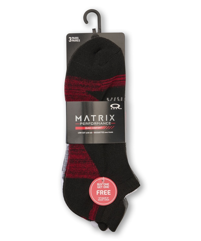 Ces chaussettes sport basses de Matrix possèdent une pointe lisse et un rembourrage complet afin que vos pieds se sentent bien. Elles sont équipées de notre technologie de protection antiodeurs FRESHTECHMD qui aide à garder vos pieds frais toute la journée. Nous offrons ces chaussettes de sport dans un paquet de trois paires pour faciliter le magasinage. Achetez-en un paquet et obtenez-en un autre gratuitement!