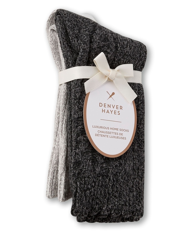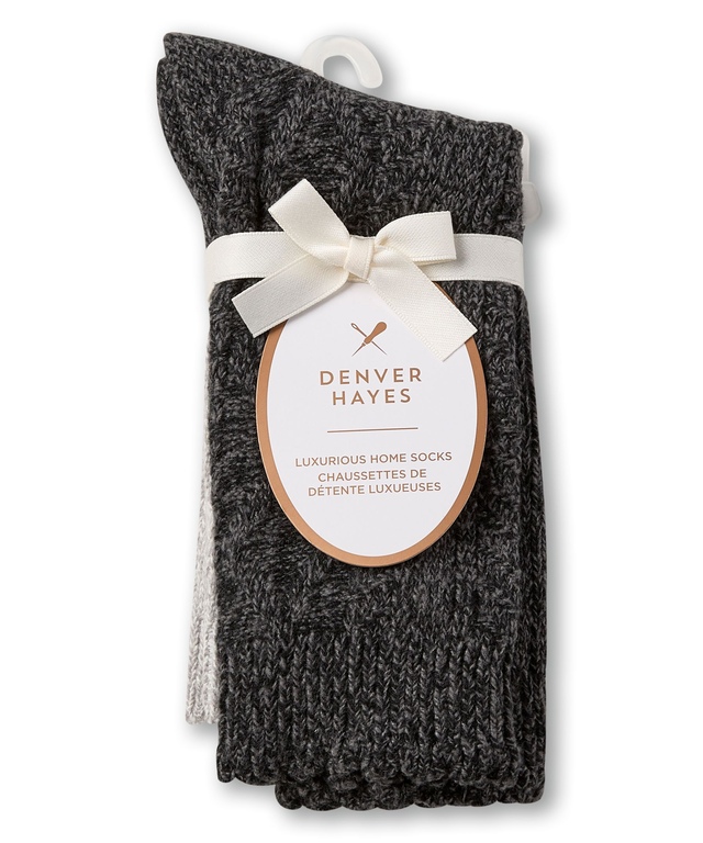 Ces chaussettes de Denver Hayes sont ultradouces et confortables. Elles sont dotées de Spandex ajouté pour un meilleur ajustement. Elles sont tricotées dans un motif à point de torsade traditionnel et elles ont une couture qui empêche l'irritation à la pointe de même qu'un revers en tricot côtelé pour les garder bien en place. Nous offrons ces chaussettes dans un paquet de deux paires pour faciliter les achats.