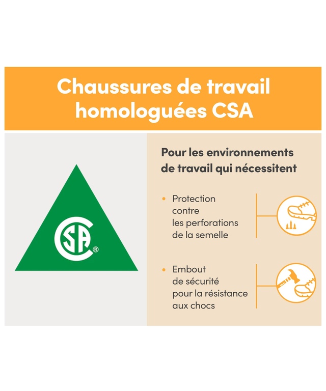 | Caractéristiques CSA | Bout en acier | Bout en acier | Bout en acier | Bout en acier | Bout en composite,Embout protecteur de classe 1,Plaque en composite | |