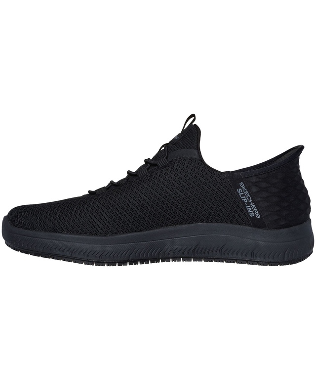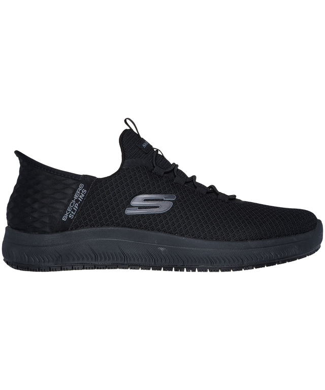 Optez pour une chaussure antidérapante et facile à enfiler avec le modèle Skechers Slip-insMD WorkMC Mains Libres : Summits - Colsin. Ces chaussures de travail faciles à enfiler possèdent une tige en maille tricotée et en matériau synthétique. Elles sont aussi munies d'un panneau de talon moulé unique Slip-insMC de Skechers et d'un coussinet de talon exclusif Heel PillowMC. Enfin, elles possèdent une semelle extérieure antidérapante et une semelle intérieure rembourrée pour le confort Air-Cooled Memory FoamMD de Skechers.