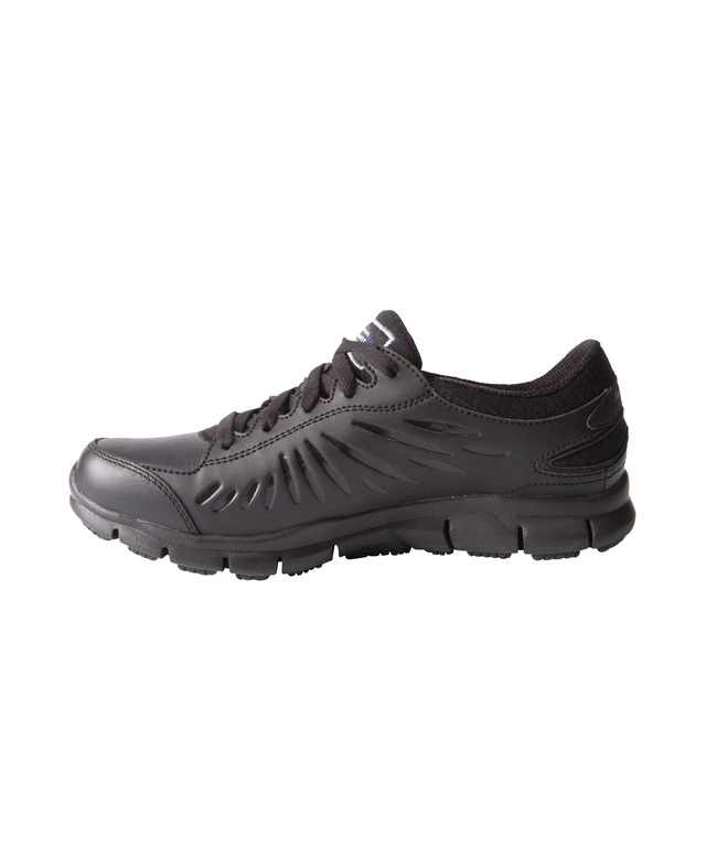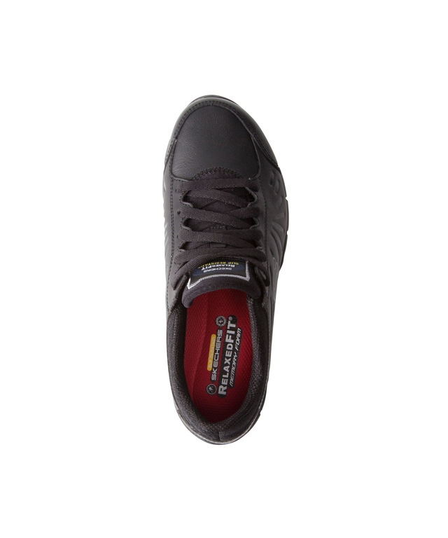 Les semelles d'usure adhérentes en caoutchouc en nitrile de ces chaussures de travail Skechers sont antidérapantes, ce qui convient parfaitement aux travailleuses de cuisine, de préparation alimentaire et d'entretien qui n'ont pas besoin de chaussures de sécurité. Les bracelets des chaussures et les panneaux de talon sont faits d'un tissu en filet perméable à l'air pour un effet rafraîchissant. Pour davantage de confort, les semelles intérieures amovibles ont un rembourrage en mousse viscoélastique ajoutant du soutien.