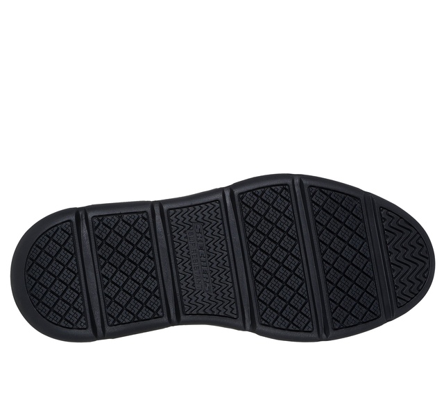Profitez à la fois du confort et du style au travail avec les chaussures Slip-InsMD mains libres WorkMC de Skechers : Gaza. Conçue avec le coussinet de talon exclusif Heel PillowMC de la marque, cette chaussure sécuritaire Oxford à enfiler est dotée d’une tige en cuir lisse avec des lacets extensibles fixes, d’une semelle intérieure refroidie à l'air Memory FoamMD Skechers et d’une semelle d'usure antidérapante avec des encoches de flexion.