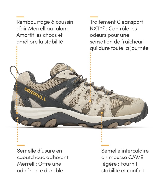 Rembourrage à coussin d'air Merrell au talon : Amortit les chocs et améliore la stabilité
