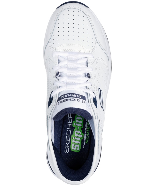 Profitez d'un confort de marche pratique en enfilant les chaussures de sport noires mains libres Slip-InsMD Relaxed FitMD : Durham de Skechers. Munies d'un talon exclusif Heel PillowMC, ces chaussures à lacets ont une tige en cuir et en matière synthétique. Elles possèdent également la semelle intérieure rembourrée refroidie à l'air Air-Cooled Memory FoamMD de Skechers.