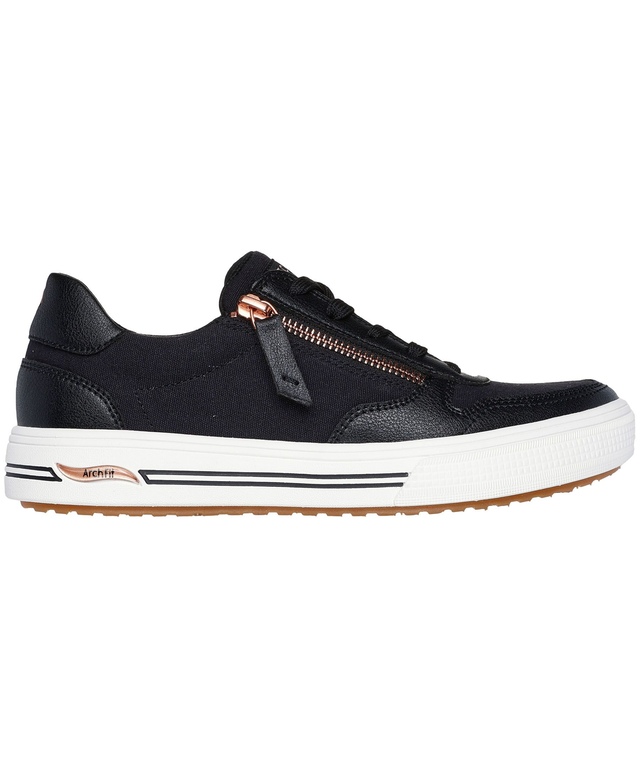 Les chaussures de sport Arch FitMD Arcade - On the Fly de Skechers StreetMC offrent confort et soutien. Les chaussures ont une tige en cuir synthétique et toile avec lacets. Elles sont également dotées d'une semelle d'usure amovible Arch FitMD et d'une semelle intercalaire rembourrée légère. Une fermeture à glissière pratique permet de les enfiler et de les retirer aisément.