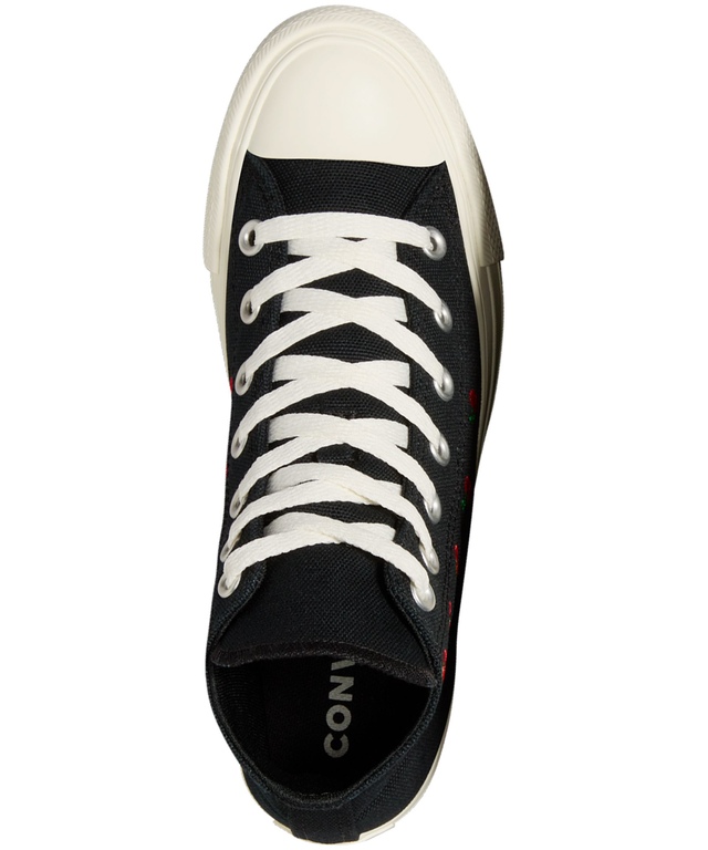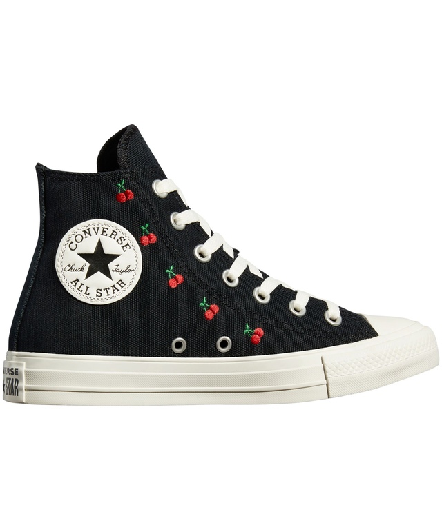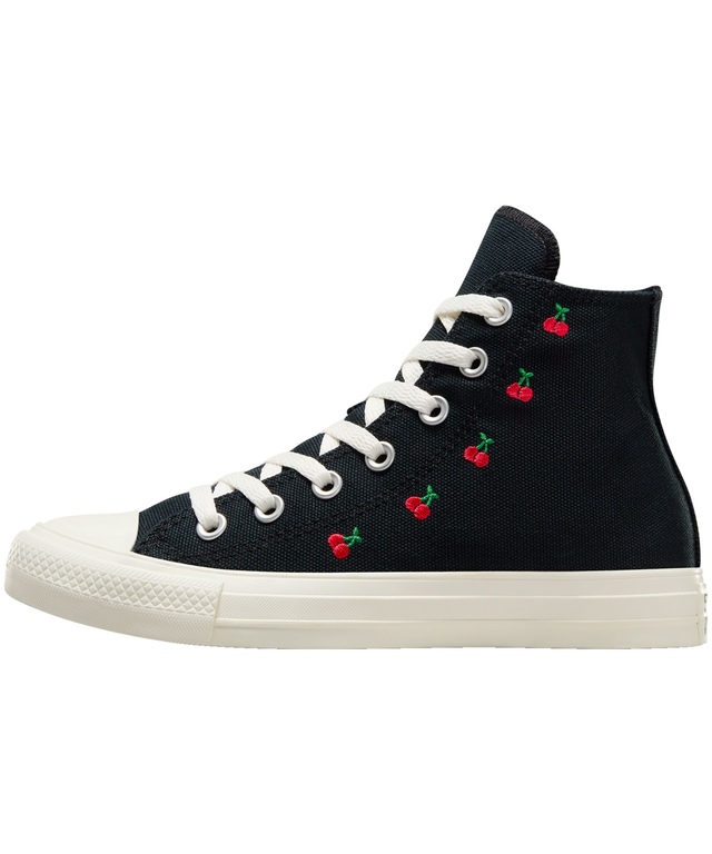 Décorées de cerises colorées, ces chaussures montantes Chuck Taylor All Star de Converse sont prêtes pour les beaux jours. Les éléments de conception uniques Chuck Taylor gardent le style les deux pieds sur terre... avec des plateformes en caoutchouc confortables bien sûr.