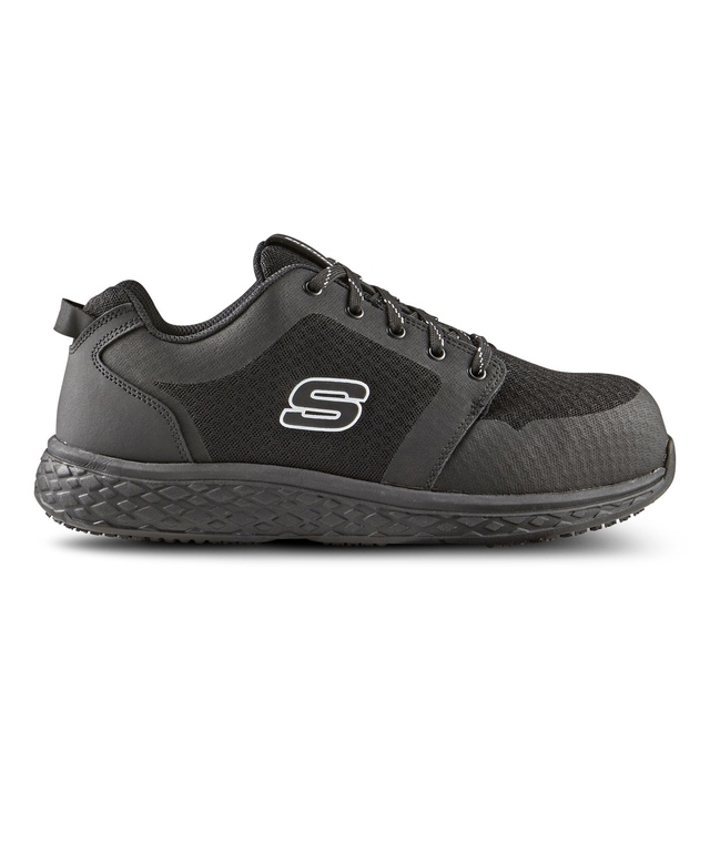 Ces chaussures de sécurité d'allure sportive de Skechers Work ont un bout protecteur en aluminium et des plaques en acier. Elles résistent également aux perforations et aux chocs électriques. La fabrication en filet de ces chaussures est conçue pour assurer votre confort. Elles ont une semelle intercalaire rembourrée et une semelle intérieure refroidie à l'air en mousse viscoélastique. La semelle d'usure antidérapante en caoutchouc améliore la traction dans les endroits propices à l'humidité et à la graisse.