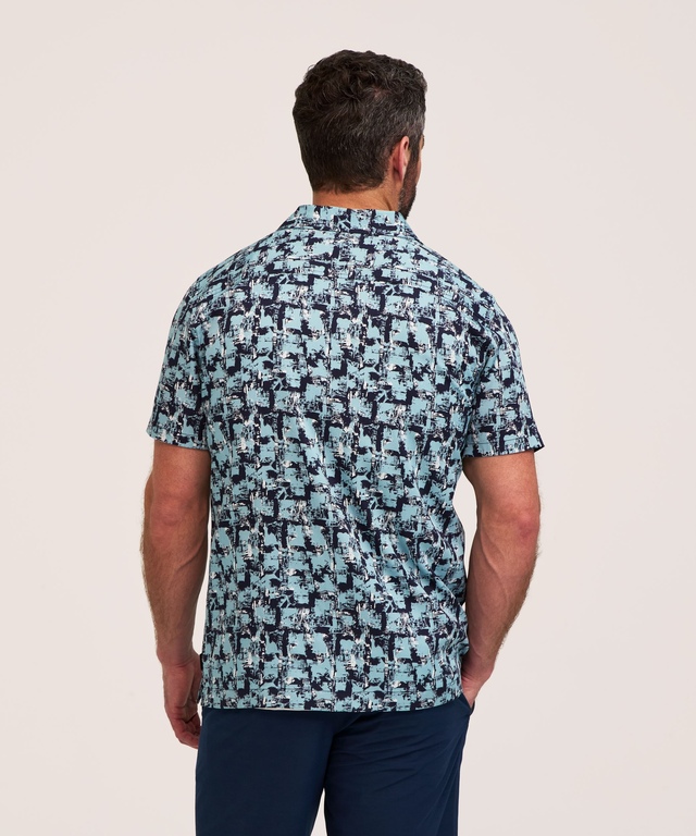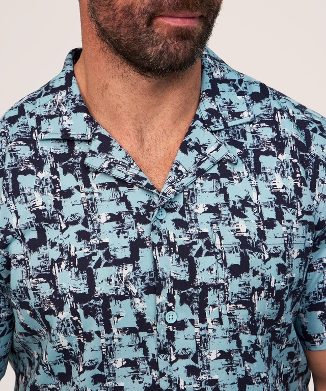 Cette chemise à manches courtes FarWest est dotée d'un motif audacieux qui convient à vos activités extérieures amusantes. Elle est douce et confortable avec un col cubain ouvert pour les journées de détente ensoleillées.