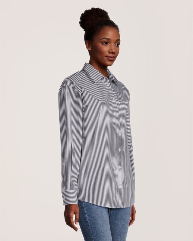 Cette chemise surdimensionnée de Denver Hayes est parfaite pour porter au quotidien. Confectionnée en coton pima impeccable, cette conception polyvalente trouvera sa place dans la garde-robe de chaque femme. Facile à porter de façon décontractée ou habillée, elle convient à toutes les occasions. Avec sa coupe surdimensionnée confortable, vous pouvez porter la chemise comme vous le souhaitez. Elle vous accompagnera du bureau au brunch en passant par une soirée en ville.