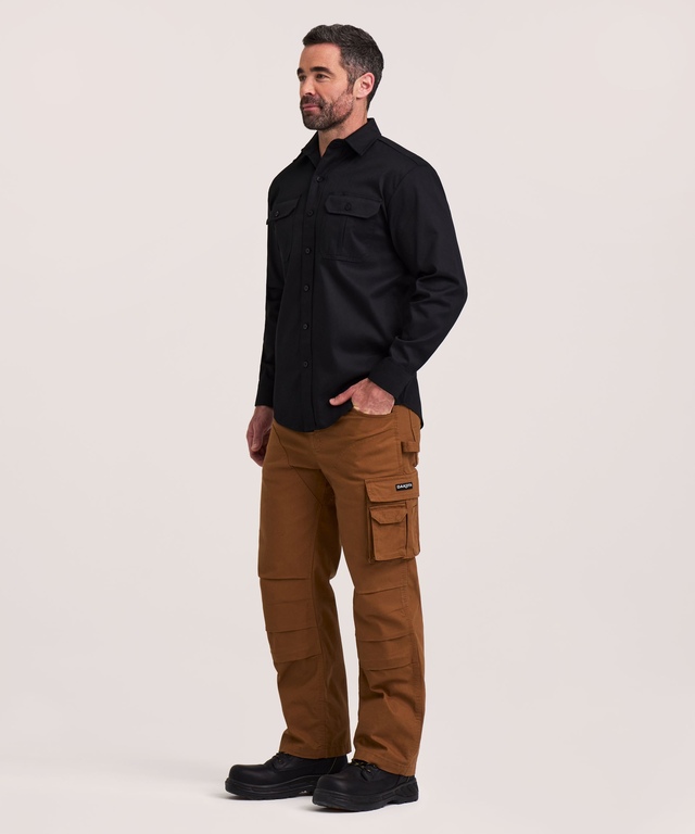 Cette chemise à manches longues fait partie de notre ligne Dakota Workpro Series. Elle est traitée avec un revêtement antisalissures et repousse-taches pour qu'elle garde sa belle apparence. Le pli arrière ajoute de l'espace de mouvement aux épaules et les poches boutonnées gardent les petits objets en sécurité pendant que vous travaillez.