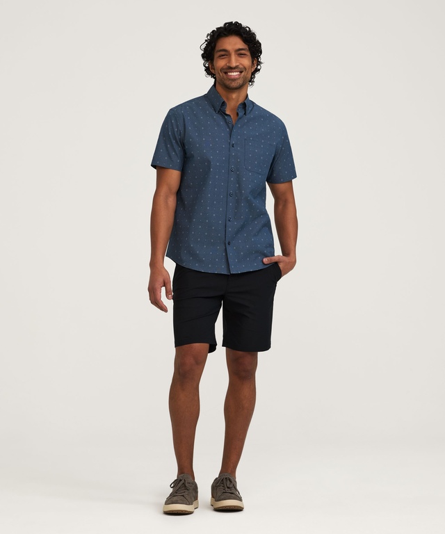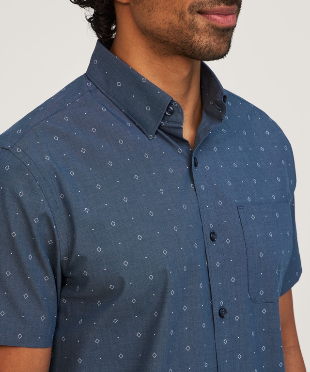 Cette chemise à manches courtes de Denver Hayes est faite de popeline de coton avec motif subtil pour une allure impeccable. Vous pouvez la porter au travail, lors de vos activités décontractées et lors de toute autre activité de la vie quotidienne. L'allure soignée de cette chemise est améliorée par le col à pointes boutonnées dissimulé qui reste bien en place, qu'il soit boutonné ou non.