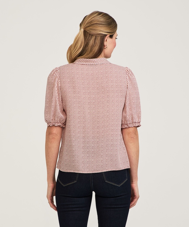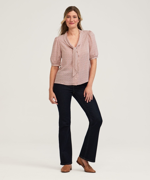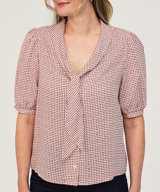 Inspirée de l'océan, ce chemisier à nœud marin classique de Denver Hayes possède un col replié et un long devant noué. Ce vêtement est fabriqué en tissu imprimé doux et arbore des manches bouffantes. De plus, il possède des revers semi-élastiques qui lui donnent une allure résolument féminine. Bref, cette blouse fort polyvalente conviendra à toutes vos activités quotidiennes.