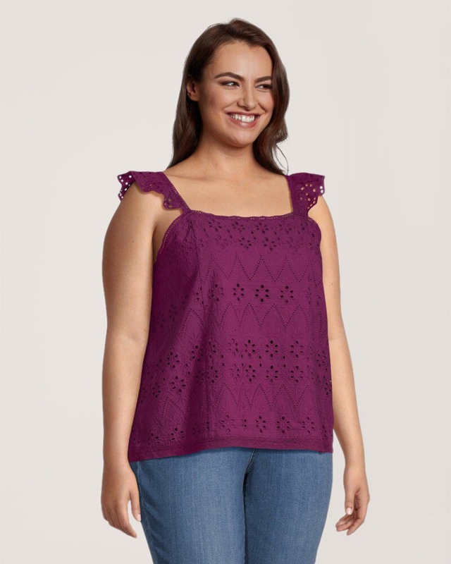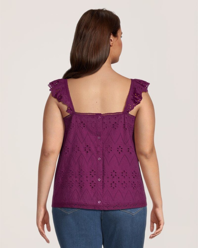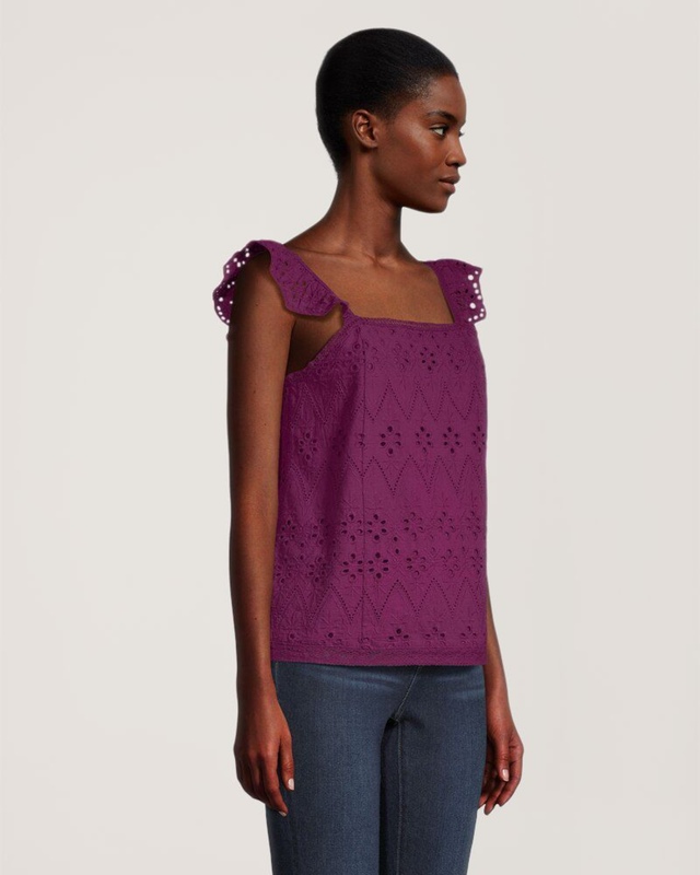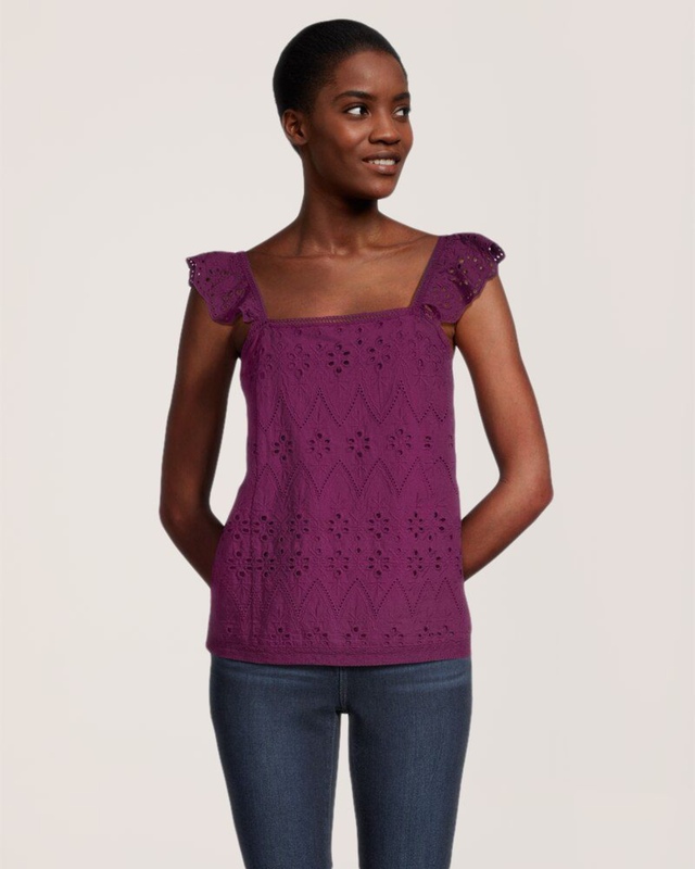 Ce ravissant chemisier de Denver Hayes est fabriqué en tissu de coton ajouré et propose des bretelles au rebord festonné. Il est tout indiqué pour les journées estivales ensoleillées et s’agence à tous vos pantalons, shorts et jupes ainsi qu’aux activités amusantes que vous prévoyez tout au long de la journée.