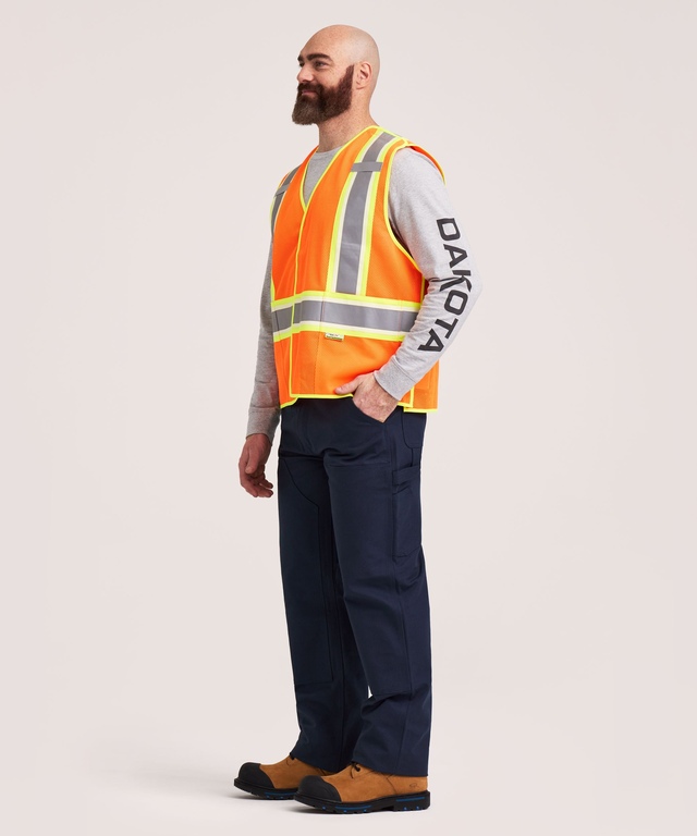 Pour la sécurité sur les chantiers extérieurs, ce gilet haute visibilité de la série WorkPro de Dakota est doté d’une bande phosphorescente VizliteMD DT pour vous permettre de rester visible lorsqu’il y a peu ou pas de lumière. Ce gilet est conçu pour être détachable en 5 points. Il est confectionné en filet perméable à l’air et il est doté de boucles réfléchissantes pour micro et d’une fente d'accès de sécurité pour anneau en D au dos.