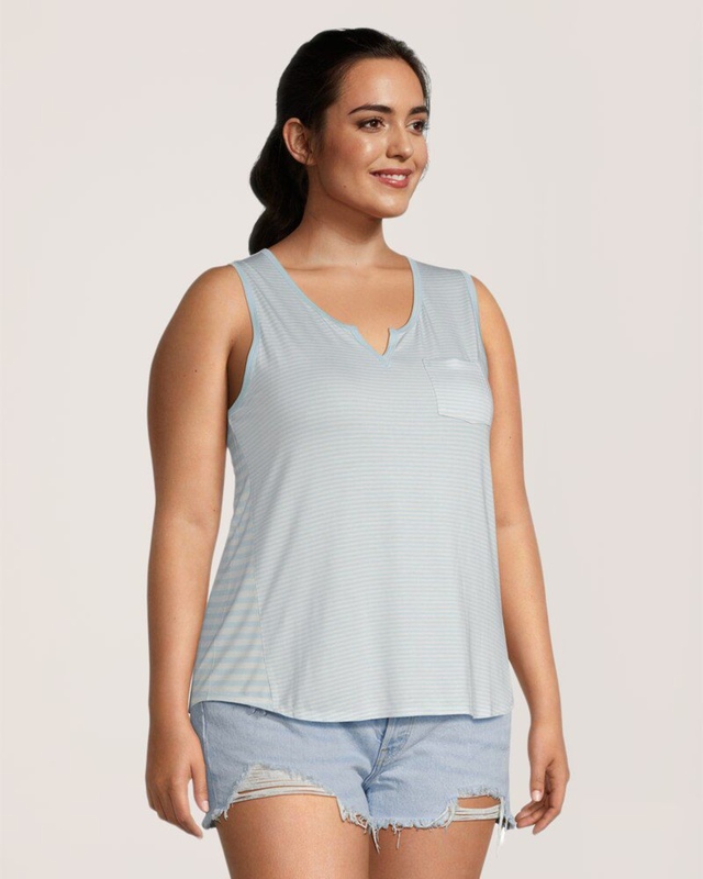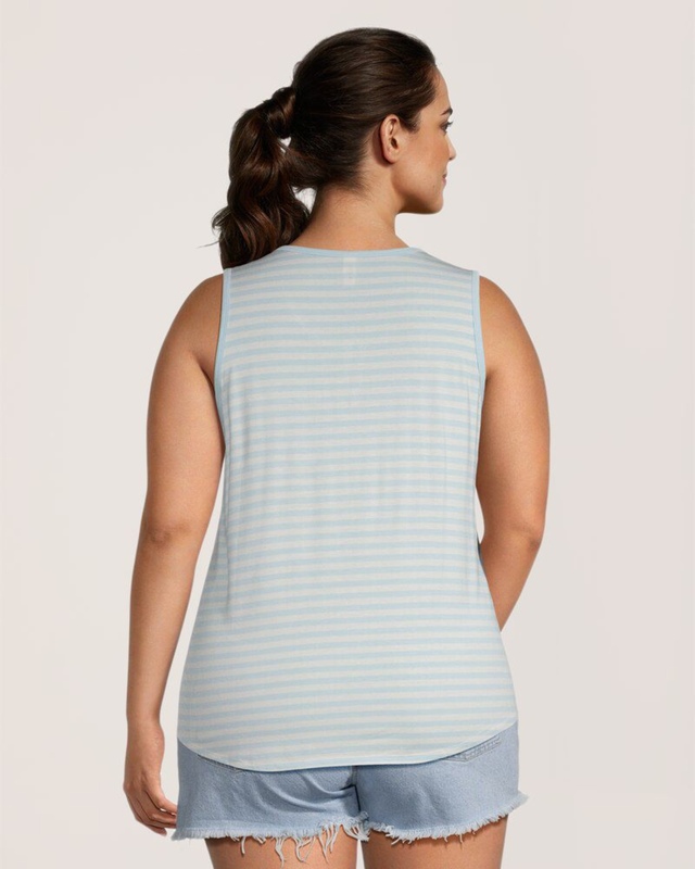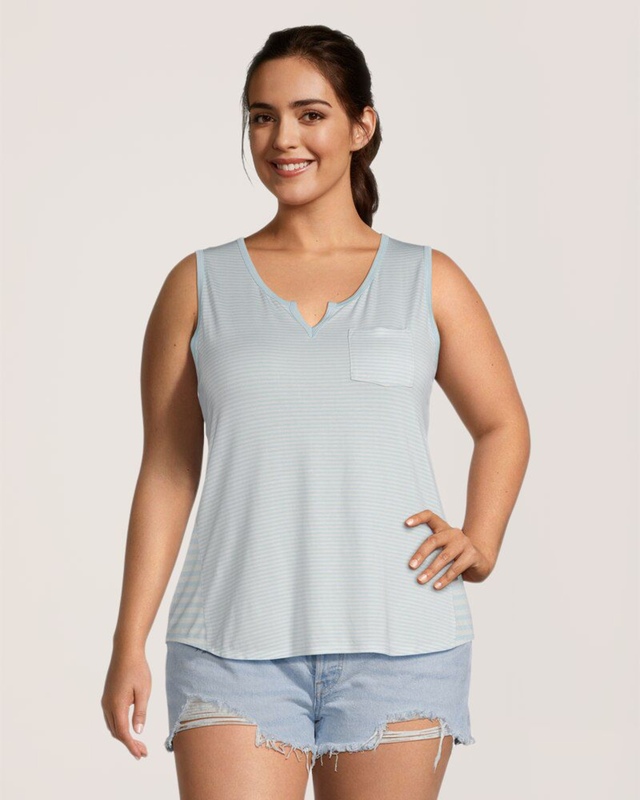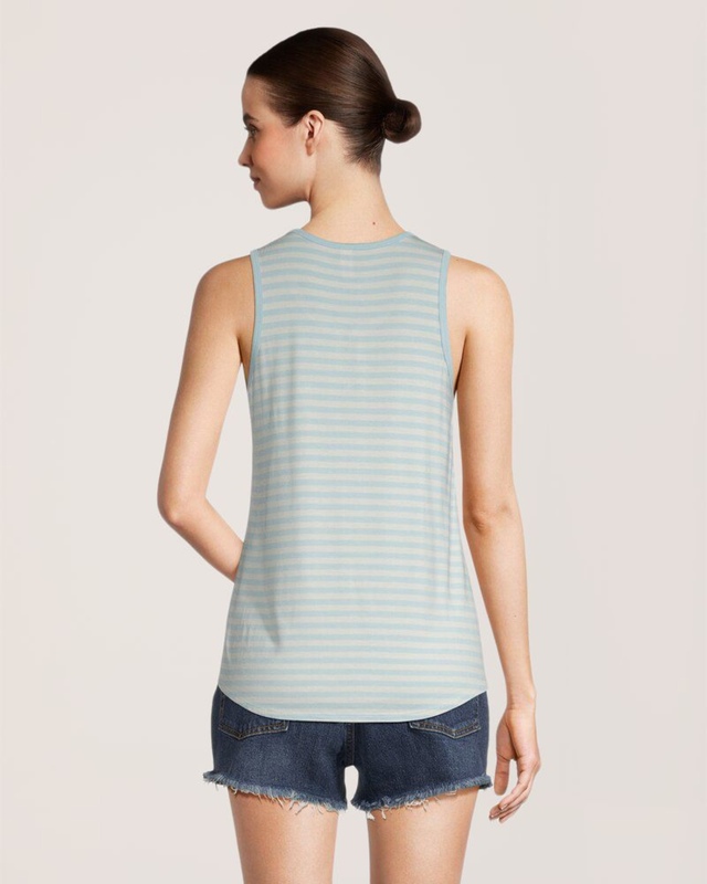 Nous avons joué avec deux largeurs de rayures pour notre débardeur de FarWest. Ce débardeur semi-ajusté est doté d'une jolie encolure crantée et d'un bordage de couleur unie pour parfaire votre apparence estivale.