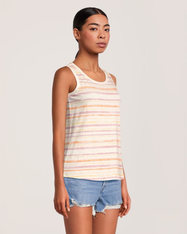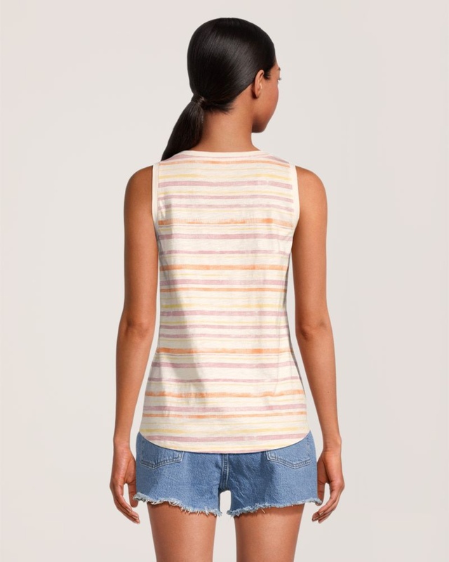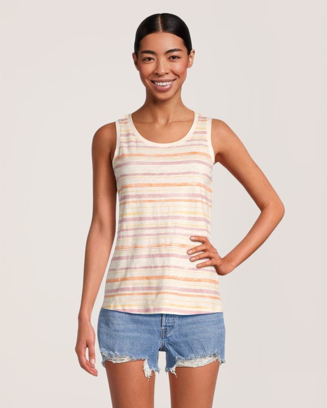Ce débardeur à encolure échancrée classique de FarWest est confectionné en coton flammé texturé pour un confort estival. Ce modèle semi-ajusté aura fière allure porté à l’extérieur ou à l'intérieur d'un pantalon ou d'un short.