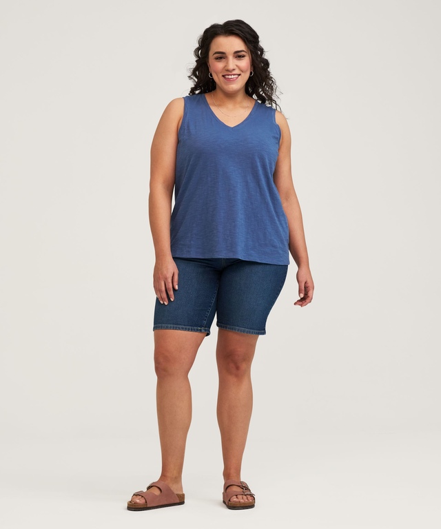 Ce débardeur à encolure en V classique de FarWest est confectionné en coton flammé texturé pour un confort estival. Ce modèle semi-ajusté aura fière allure porté à l’extérieur ou à l'intérieur d'un pantalon ou d'un short.