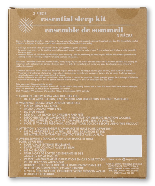 Ensemble 3 pièces : Masque oculaire en satin, 9 ml d’huile de lavande en diffuseur et 60 ml de vaporisateur intérieur à la lavande