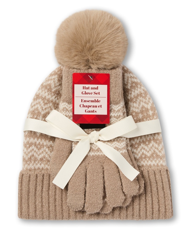 Affrontez le froid avec notre ensemble tuque et gants à motif traditionnel. La tuque est dotée d'un gros pompon pelucheux qui lui donne une allure décontractée et d'un revers rabattable pour plus de chaleur sur vos oreilles.