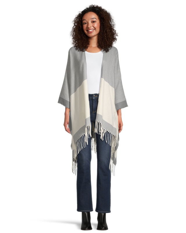 Foulard de style ruana à blocs de couleur avec frange pour femmes, Denver Hayes
