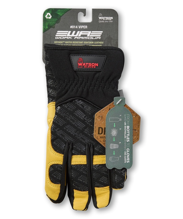 Enfilez les gants à haute performance Viper de Watson Gloves pour hommes pour vous protéger des intempéries. La paume matelassée en peau de chèvre Dryhide résistante à l’eau empêche la pénétration de l’eau. Confectionnés à 96 % de bouteilles en PET recyclées après consommation, ces gants pour hommes constituent un choix écologique. De plus, le bout des doigts et le pouce renforcés protègent les zones d’usure clés.