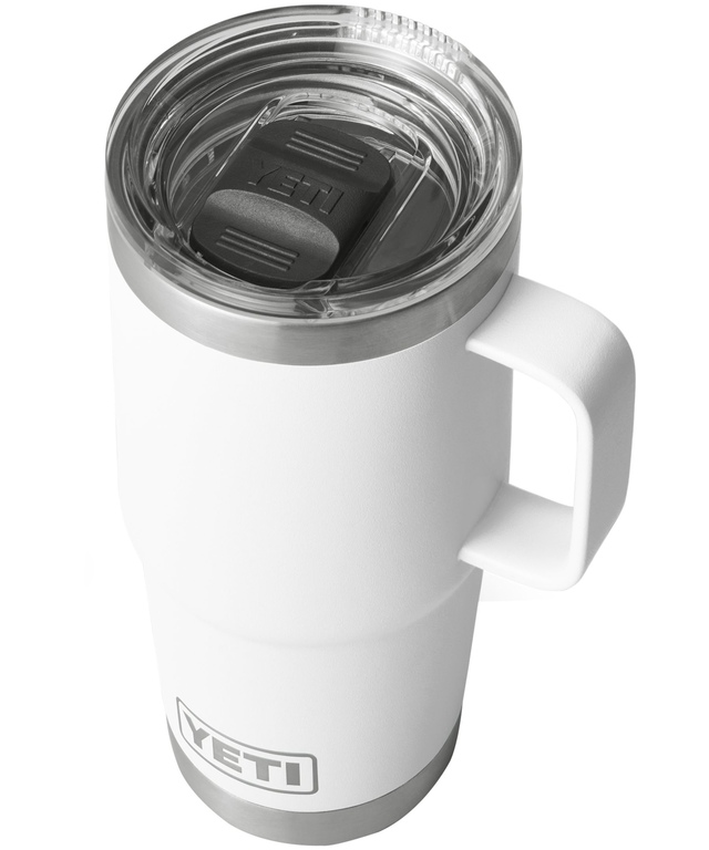 Cette grosse tasse de voyage noire de 20 oz YETI Rambler contient suffisamment de caféine pour les gros buveurs de café. Elle est dotée de la nouvelle poignée élevée de la marque et elle est compatible avec les porte-gobelets. Elle a de plus un couvercle Stronghold étanche qui se visse facilement, tant pour les droitiers que les gauchers.