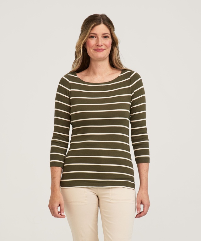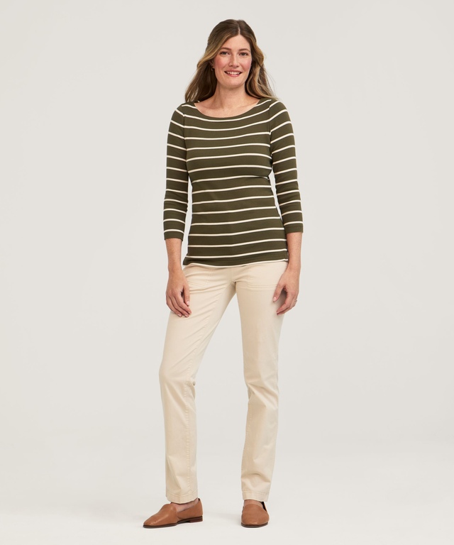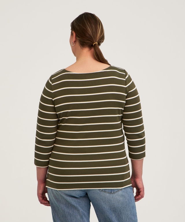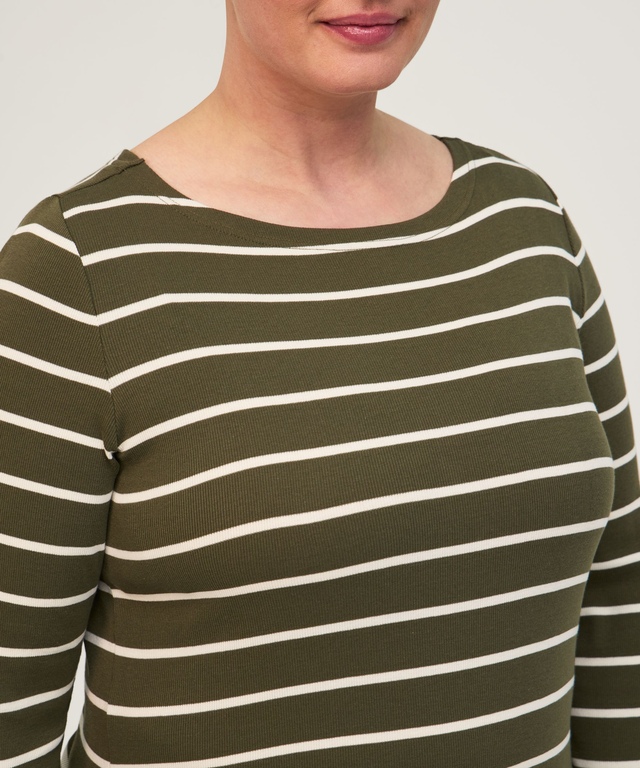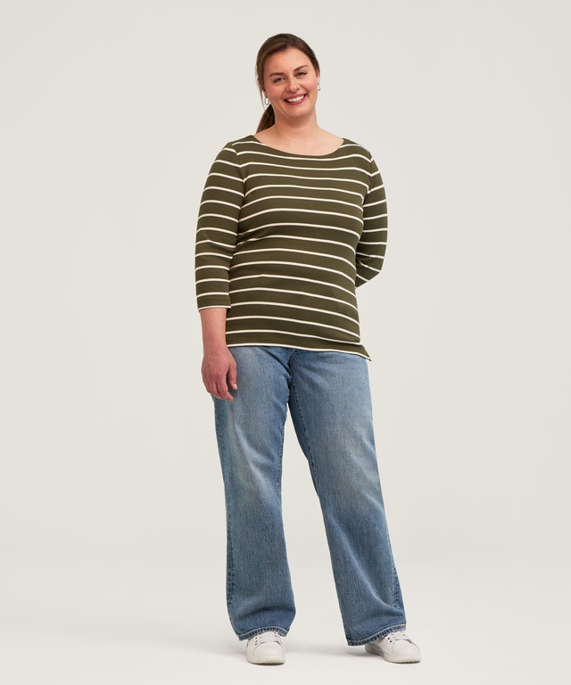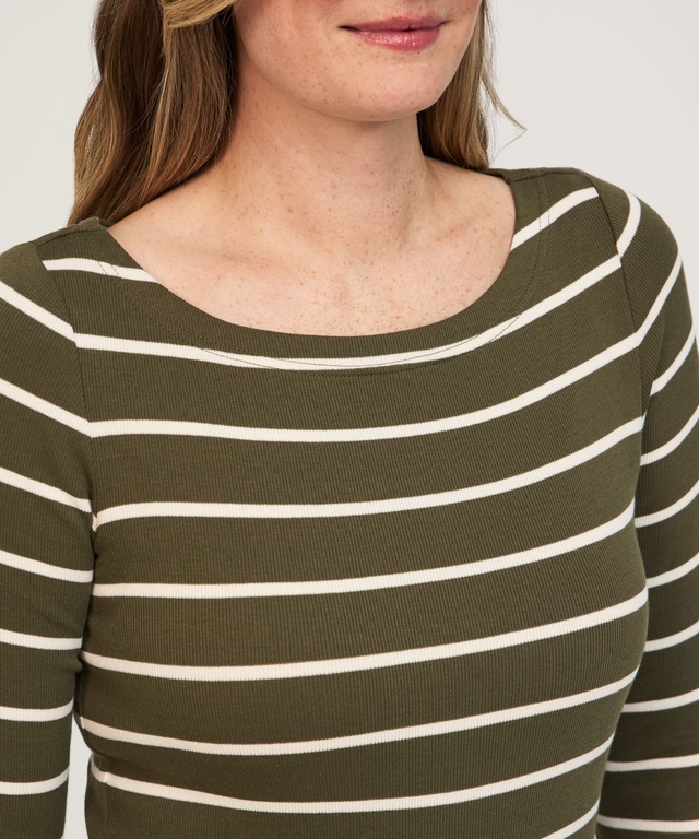 Notre haut de Denver Hayes doux et confortable est confectionné en tricot côtelé et à rayures. Il est doté d’une encolure bateau qui avantage la silhouette et de manches trois-quarts. Sa coupe cintrée le rend parfait pour être rentré à l’intérieur de la ceinture ou pour être porté par-dessus votre pantalon moulant.