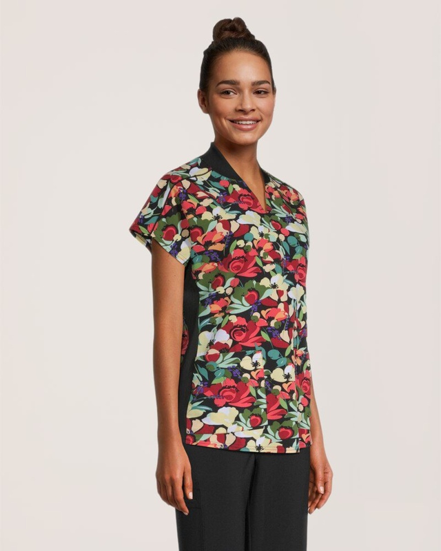 Notre haut d'uniforme médical à encolure en V de Scrubletics affiche une coupe étroite contemporaine profilée pour épouser et agrémenter les formes de votre corps. Il possède un col et des panneaux latéraux en tricot côtelé offrant une plus grande aisance de mouvement. De plus, il comporte deux poches qui procurent de l'espace de rangement pour vos petits outils de travail essentiels.